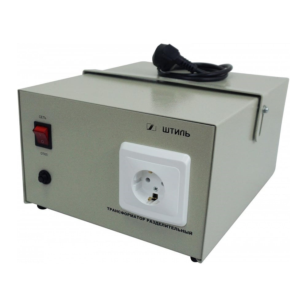 Трансформатор Штиль U вход 230 220, в корпусе ОСЗМ Р 220/220-2,0-50 представляет собой однофазный разделительный трансформатор в корпусе, предназначенный для электропитания приборов, инструментов, аппаратуры и устройств переменным током напряжением 220 (230) В, от стандартной электросети с напряжением 220 (230) В, при обеспечении гальванической развязки цепей питания нагрузки от электросети. Первичная и вторичные обмотки разделительного трансформатора не имеют гальванической связи и разделены экранирующей обмоткой, поэтому разделительный трансформатор выполняет также функцию фильтра импульсных помех, возникающих в питающей сети. Основным назначением изделия является повышение уровня безопасности работающих электрических приборов, соответственно - снижение уровня электротравматизма. Изделие может работать совместно со стабилизаторами напряжения и источниками бесперебойного питания переменного тока. Изделие состоит из следующих основных частей: металлический корпус, трансформатора разделительного на тороидальном сердечнике, выключатель «СЕТЬ», автомат защиты (для защиты изделия и подключённой к нему нагрузки от превышения потребляемого тока), сетевой шнур с евровилкой.