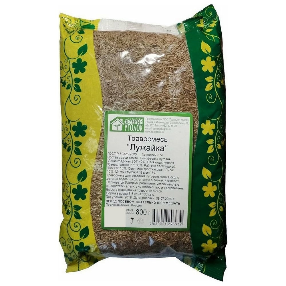 Семена газона Зеленый уголок травосмесь Лужайка, 0.8 кг 4660001293939 - травосмесь для создания лугового газона около детских учреждений, а также в зонах отдыха: парках, скверах. Отличается быстрым развитием, устойчивостью к недостатку влаги, зимостойкостью и долголетием. Высота скашивания травостоя 6-8 см