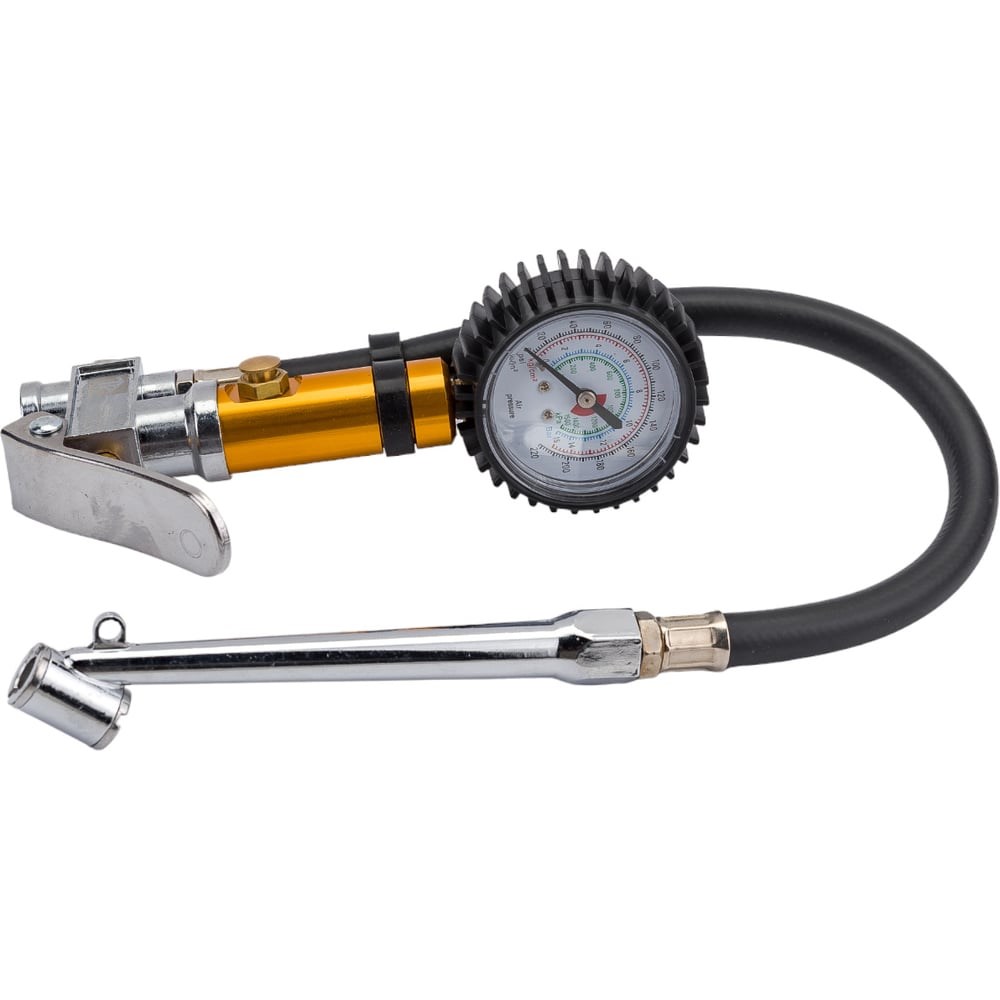 Трехфункциональный манометр для шин THORVIK ATIG3 с насадкой-удлинителем для г/а, шланг 300 мм 53400 применяется для контроля давления и подкачки при обслуживании пневматических шин колесных транспортных средств, строительной и сельскохозяйственной техники в диапазоне рабочего давления от 0 до 12 bar (12, 24 кгс/см2). Изделие укомплектовано аналоговым стрелочным манометром класса 2.5 гост 2405-88, снабженного механизмом деформационного типа.
