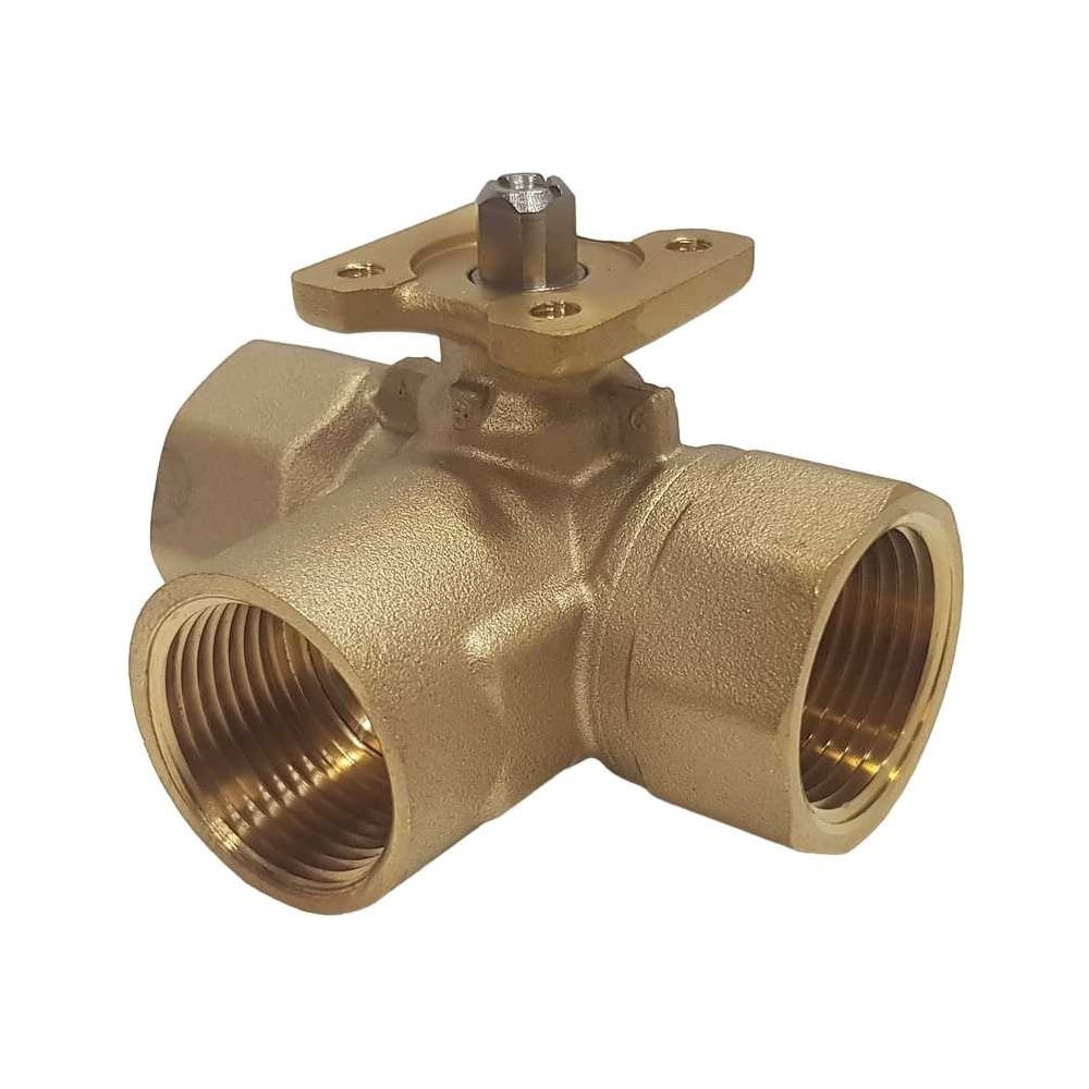 Трехходовой шаровой кран TECHNO 3025В латунный, под привод DN25, G1 КVS 16 640325-2 предназначен для систем горячего и холодного водоснабжения и водных растворов. Кран отличается надежностью, долгим сроком службы и высокой герметизацией. Эти параметры достигаются благодаря литому корпусу из латуни с применением фторопластовых уплотнений (PTFE), двум уплотнительным кольцам из этиленпропиленового каучука (EPDM). Шар и вал изготовлены из нержавеющей стали. Дополнительные характеристики: Максимальное давление - PN20 (~Ру20, 2Мпа, 20Bar, 20атм) Перепад давления - PN3,5 Запорное давление PN13 Рабочая среда - вода, содержание гликоля не более 50 %, пар низкого давления Температура рабочей среды - от -5°C до 120°C. Кронштейн-переходник под привод и сам привод приобретаются отдельно.