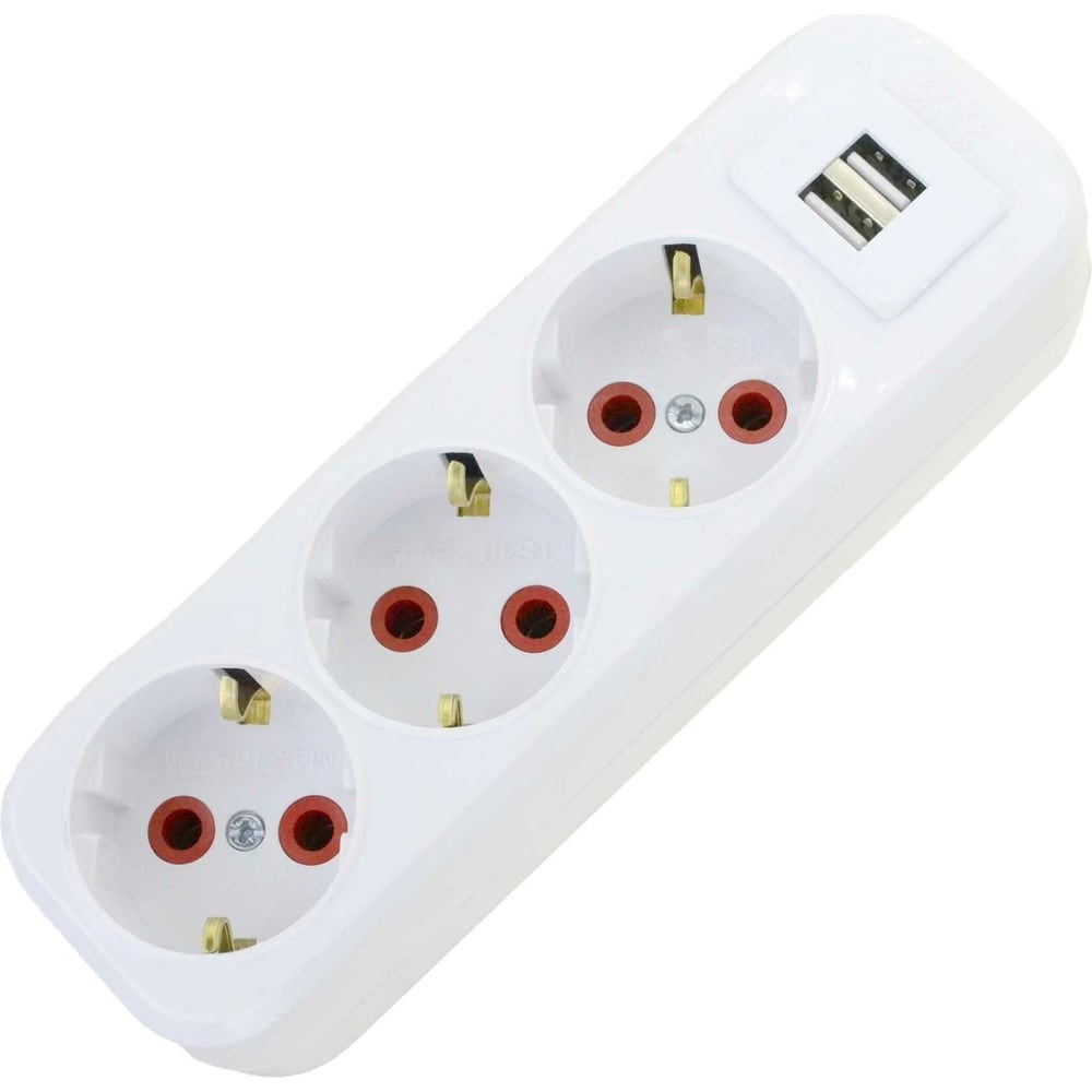 Колодка AY-KA 3-местная ,с заземлением, с USB, белый 7730200