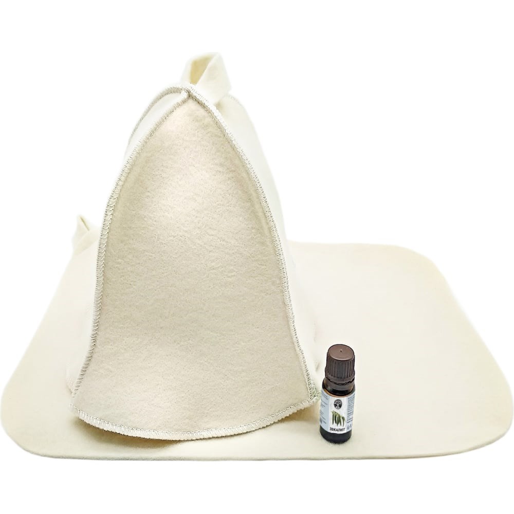 В набор входят шапка, коврик и эфирное масло для бани и сауны. Шапка для бани эффективно защищает голову от перегрева. Сделана из смесового фетра, он гипоаллергенный и неколючий, и не стирается после стирки и посещения бани и сауны. Для бани шапка имеет классическую форму и удобный подвес-петлю. Шапочки для бани отлично подойдут для отдыха, так как устойчивы к высоким температурам, они быстро сохнут и прекрасно держат форму. Коврик для бани, для сауны имеет размер 40 на 30 см. Эти банные принадлежности обеспечат защиту тела от перегрева и ожогов. Подстилка для бани и сауны состоит из смесового фетра - это уникальный гипоаллергенный материал, подходящий для чувствительной кожи. Коврики абсолютно не колючие и не имеют постороннего запаха. Лежак отлично подойдет для отдыха, он устойчив к высоким температурам, быстро сохнет, не теряет цвет и форму после стирки. Все эфирные масла Бацькина баня содержат в себе натуральные органические компоненты без применения химических добавок. Эфирное масло имеет объем 10 мл. Масло используется для снятия стресса, для успокоения и омоложения кожи. Важно: аксессуары для бани и сауны из смесового фетра не требуют частых стирок. Натуральный материал, из которого сделаны принадлежности для бани, обладает свойствами самоочищения. Допустимо стирать вручную или на режиме ручной стирки в машине, при стирке используйте прохладную воду. Не сушите набор на батарее или других обогревательных приборах.