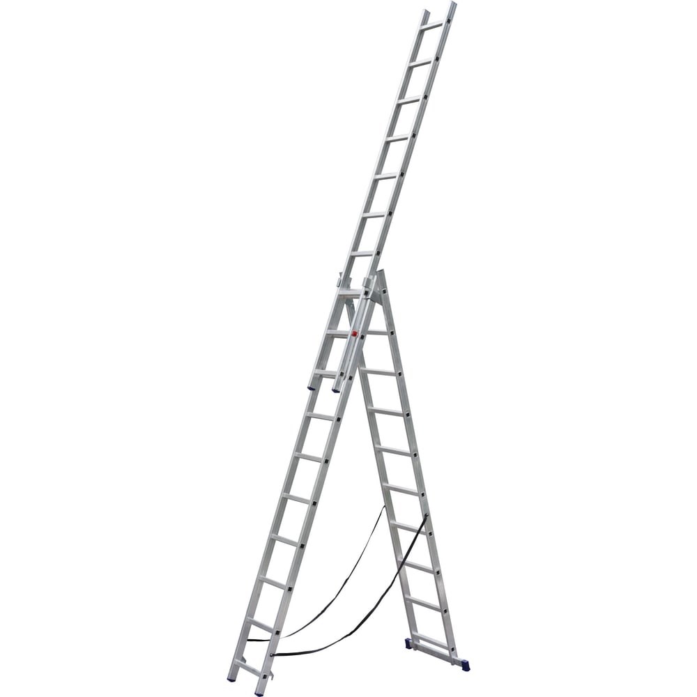 Трёхсекционная алюминиевая лестница SMARTY 3х11 SN011-311 – это универсальная лестница, которой можно пользоваться как стремянкой или как приставной лестницей с увеличенными возможностями по высоте за счет дополнительной секции. Специально разработанная конструкция позволяет использовать лестницу на поверхностях разных уровней. Возможность использовать первую секцию отдельно, как стандартную алюминиевую односекционную лестницу.