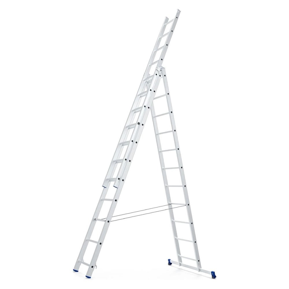 Универсальная трехсекционная лестница Zarges 3х11 ступеней 48924Эти лестницы настолько устойчивы, благодаря тому что опираются на стену: эти лестницы изготовлены из легкого высококачественного алюминия, стойки из лучших квадратных профилей, обеспечивающих жесткость и надежность, необходимые вам как профессионалу для максимальной производительности на лестнице при выполнении различных видов работ.Лестницы подходят для профессионального использования.Свойства и характеристики:Прочная широкая траверса с нескользящими ножками для устойчивости.Прочная стальная направляющая арматура.Высокопрочная защита от раскрытия.Крючок с замком для надежной фиксации и удобства транспортировки.Ширина 478 мм для большего комфорта в работе.Нагрузка до 150 кг.