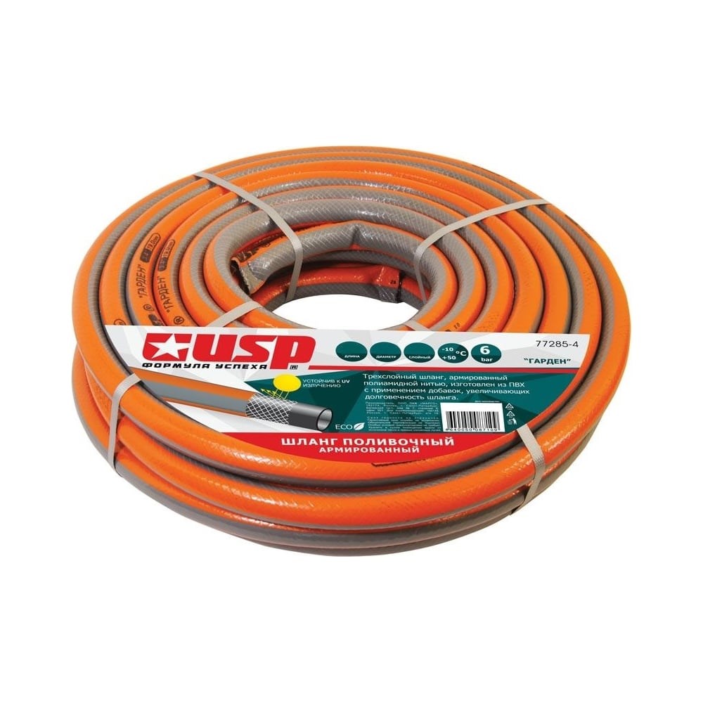 Трехслойный поливочный шланг Usp ГАРДЕН 1"х 25 м 77286-4 - незаменимый помощник для полива растений на садовых и огородных участках. Шланг изготовлен из ПВХ и имеет армированный слой, что обеспечивает прочность и устойчивость к разрывам. Изделие обладает широким диапазоном рабочих температур, благодаря чему подойдет для всепогодного применения.