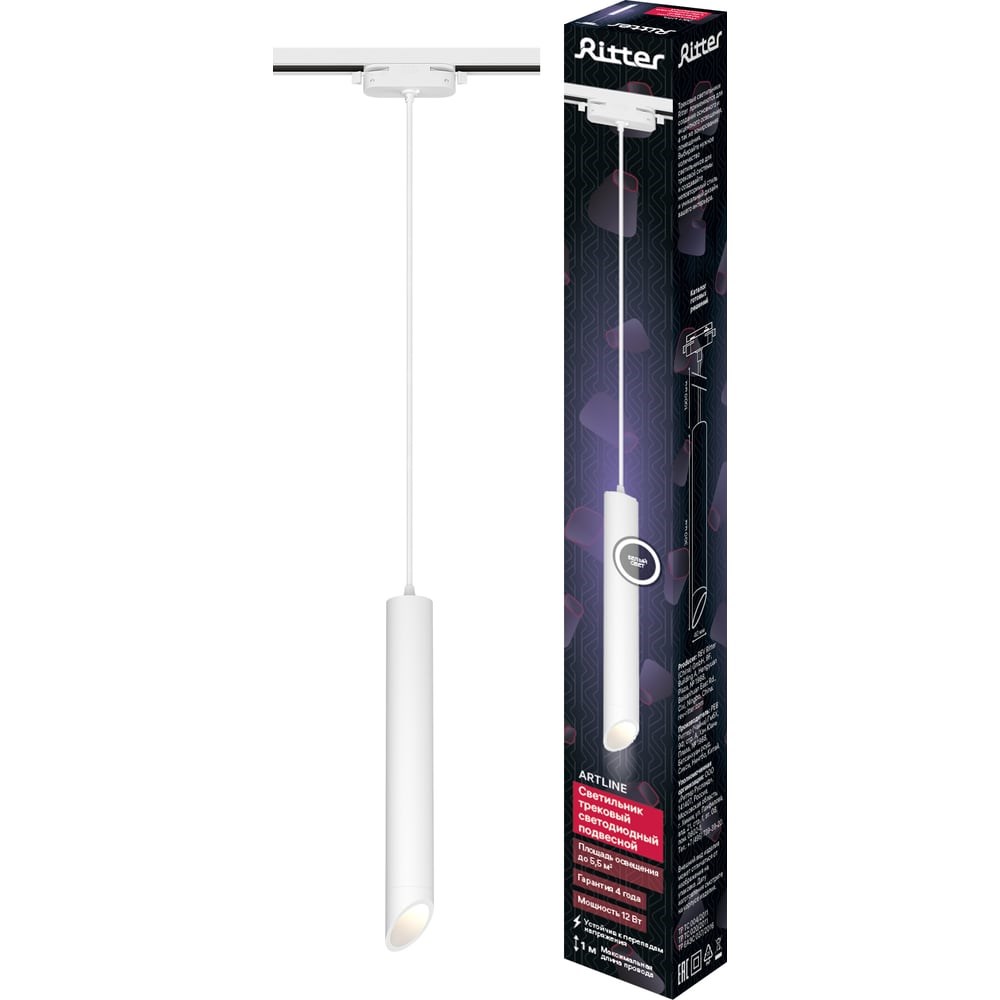 Трековый подвесной светодиодный светильник RITTER Artline цилиндр 40x300mm 12Вт 840Лм 4000К 230В алюминий белый 59706 7 предназначен для основного, акцентного и дополнительного освещения жилых комнат, офисов, торговых помещений, ресторанов. Для основного освещения нужно несколько светильников, установленных по периметру комнаты. Для создания интересного эффекта рекомендуем комбинировать светильники разного типа, цвета и формы. Светильник устанавливается на однофазный шинопровод 220В. В коллекции ARTLINE представлены накладные шинопроводы 1 и 2 метра в белом и черном цветах (установка на все типы потолков), а также все необходимые аксессуары для создания системы освещения. Все трековые светильники Ritter имеют универсальные размеры оснований и креплений, поэтому можно установить светильник и на уже существующий шинопровод. Трековые системы - актуальный и долгосрочный тренд в дизайне. Они легко комбинируются как с современными потолочными светильниками, светодиодными люстрами, настенными бра, так и с классическими моделями люстр. Треки подходят для помещений с большой площадью, со сложной формой, с высокими или многоуровневыми потолками, лестницами. Светильники можно перемещать по шине, поворачивать в нужном направлении, создавая акценты или рассеянный свет, можно добавлять или убирать споты, подвесные светильники.