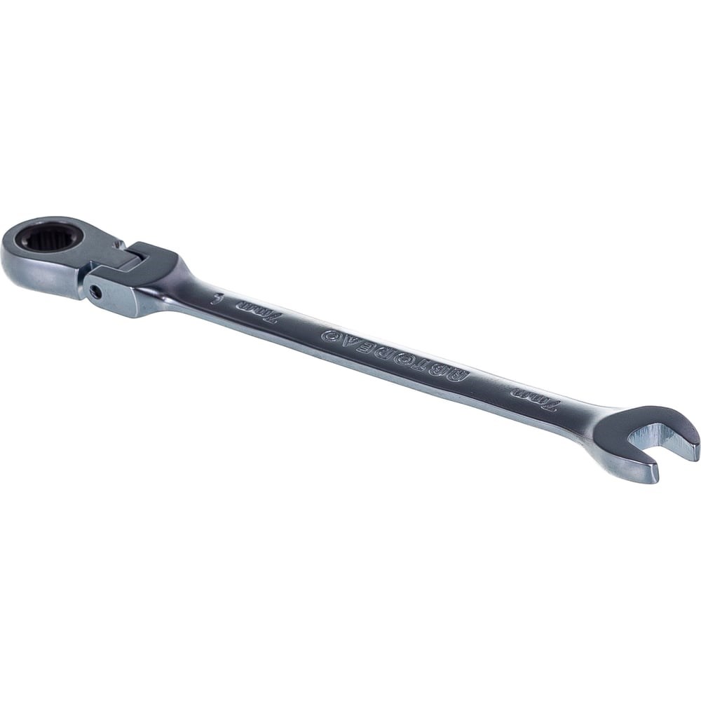 Комбинированный трещоточный шарнирный ключ 7х7 АвтоDело 30207 12803 с эргономичной накидной головкой подходит для работы с крепежом на длинной резьбе. Для труднодоступных гаек и болтов можно использовать рожковую часть инструмента.