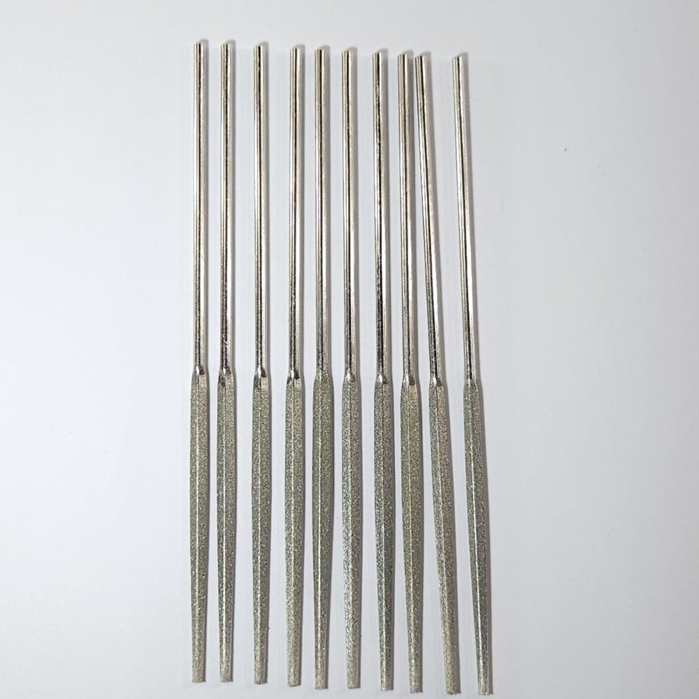 Изготовлен по ГОСТ 23461-84. Номер надфиля по ГОСТ 2827-0008. В комплекте 10 шт, упакованы в пластиковую тубу, удобную для хранения. Идеальный инструмент для снятия мелких заусенцев, обработки деталей из быстрореза, закаленных сталей, керамики, стекла и других материалов.