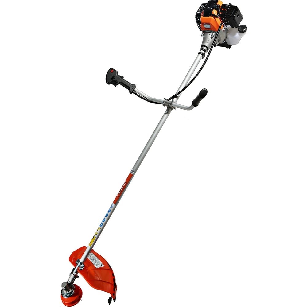 Sturm! BT143 – универсальная бензиновая коса бытового класса для ухода за приусадебной территорией площадью до 1000 кв. метров. Инструмент имеет классическую компоновку с прямой неразъемной алюминиевой штангой и кованым стальным валом внутри, нижним понижающим редуктором и Т - образной рукоятью велосипедного типа – такая компоновка обеспечивает необходимый запас по прочности и удобна в эксплуатации для пользователя, особенно при обработке больших участков и работах на пересеченной местности…Модель оснащена мощным и экономичным двухтактным двигателем рабочим объемом 42.7 куб см (мощность 3 кВт), позволяющим уверенное использование в качестве режущей оснастки не только косильных головок с леской разных видов, но и металлических ножей, рассчитанных на скашивание густой травы, кустарников, сухостоя. Легкость запуска инструмента гарантирует механизм облегченного старта со специальной дополнительной пружиной. Благодаря праймеру, легкому доступу к свече зажигания, и, полупрозрачному топливному баку модель проста и удобна в обслуживании.