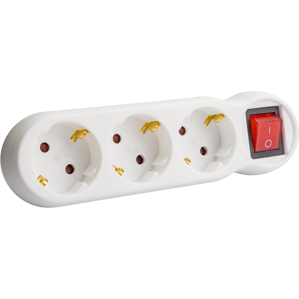 Белый тройник с выключателем IEK, Т-01/03В 3 места 2P+PE 16А WTP10-16-03-ZK-K01
