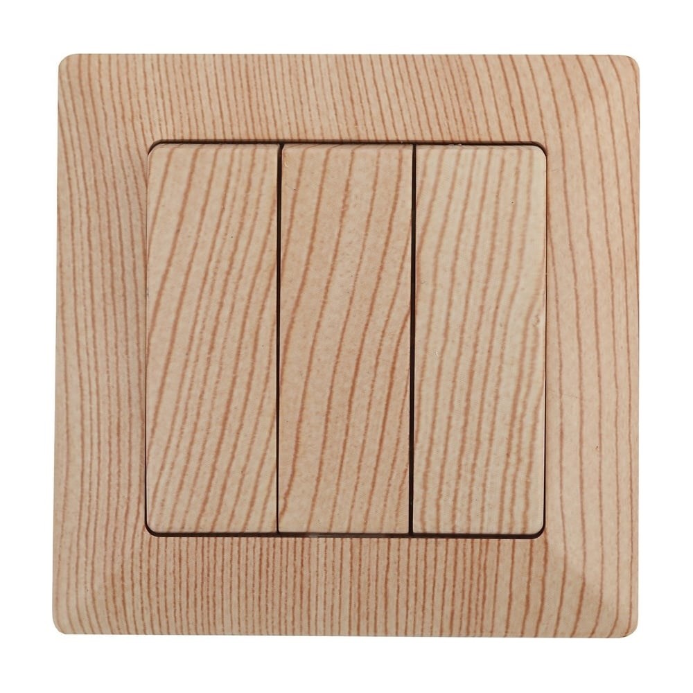 Тройной выключатель Intro 410611 10А, 250В, СУ, Solo, сосна 240 Б0043304 выполнен из качественного негорючего термопласта, укомплектован одноместной рамкой, оснащён винтовыми клеммами. Вертикальное расположение клемм обеспечивает удобный и надёжный монтаж. Клеммы с двумя отверстиями позволяют соединять соседние выключатели шлейфом. Установка в подрозетник производится как на монтажные лапки, так и на винты. Для установки 2-х и более выключателей в несколько подрозетников в ряд дополнительно используются многоместные рамки.