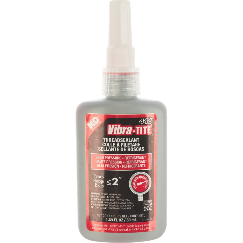Трубный герметикVibra-tite 446 применяется для работ с хладогентом. Устойчив к растворителям, высокому давлению и вибрации. Также проявляет стойкость к химическому воздействию аммиака, галогенидам, фторуглеродам. Используется в холодильных установках и при работе с испаряющимися химическими веществами.
