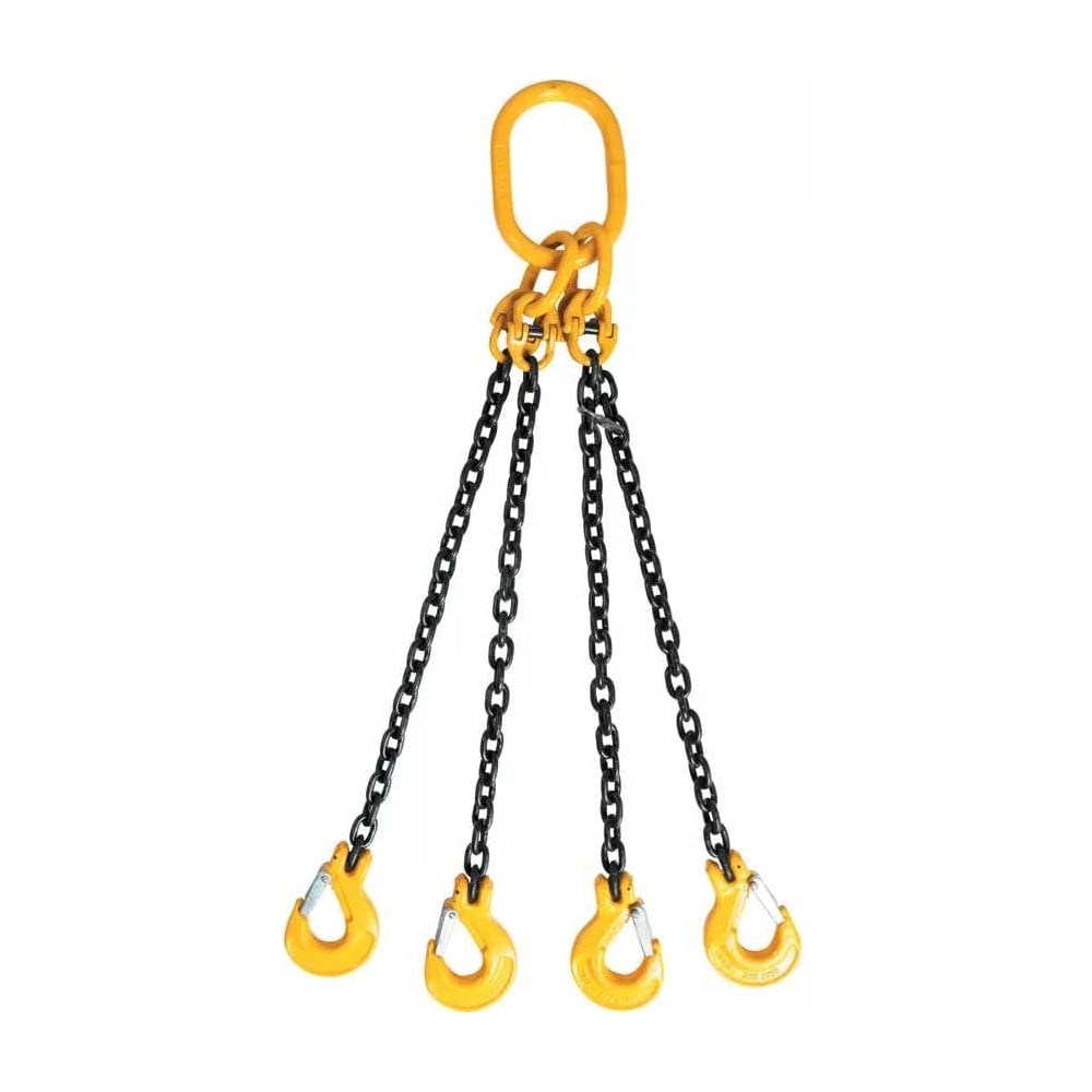 Цепной четырехветвевой строп представляет собой универсальное грузозахватное приспособление для подъема и перемещения грузов, состоящее из четырех цепей высокого класса прочности. Строп оснащен крюками с защелками для безопасной эксплуатации. Иногда цепной четырехветвевой строп обозначают как «паук цепной», также он соответствует марке «строп 4сц».Характеризуется мобильностью, компактностью, длительным сроком службы, гибкостью, долговечностью, может работать в агрессивных средах, при низких и высоких температурах, ремонтопригоден, а так же возможностью использования при различных способах строповки.Изготовлен в строгом соответствии с РД 10–33–93 с изм. РД 10–231–98 «Стропы грузовые общего назначения, требования к устройству и безопасной эксплуатации», а также европейскими стандартами EN 13414-1, EN 13414-2 и EN-13414-3.