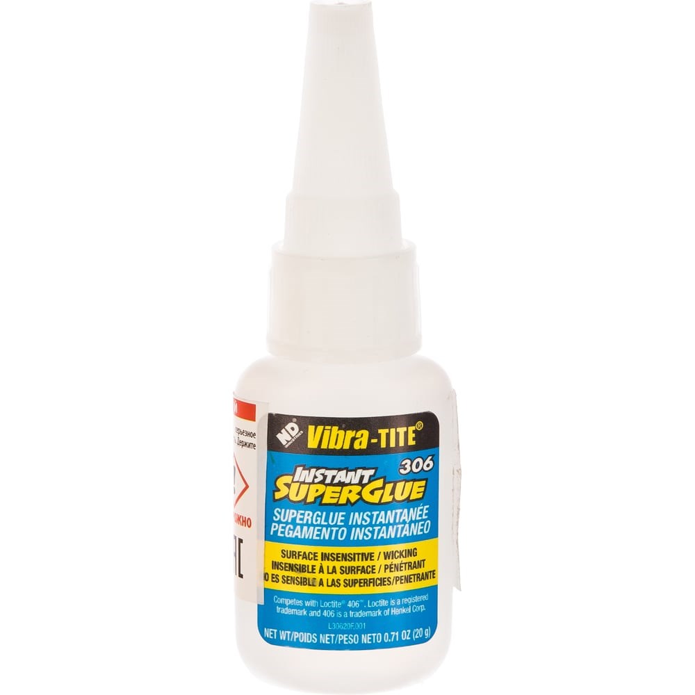 Цианоакрилатный моментальный клей Vibra-Tite 306 относится к клеям низкой вязкости, благодаря чему отлично растекается. Данный клей обладает высочайшей скоростью фиксации и может применяется с любыми материалами. Отлично подходит для склейки предварительно собранных неактивных поверхностей.