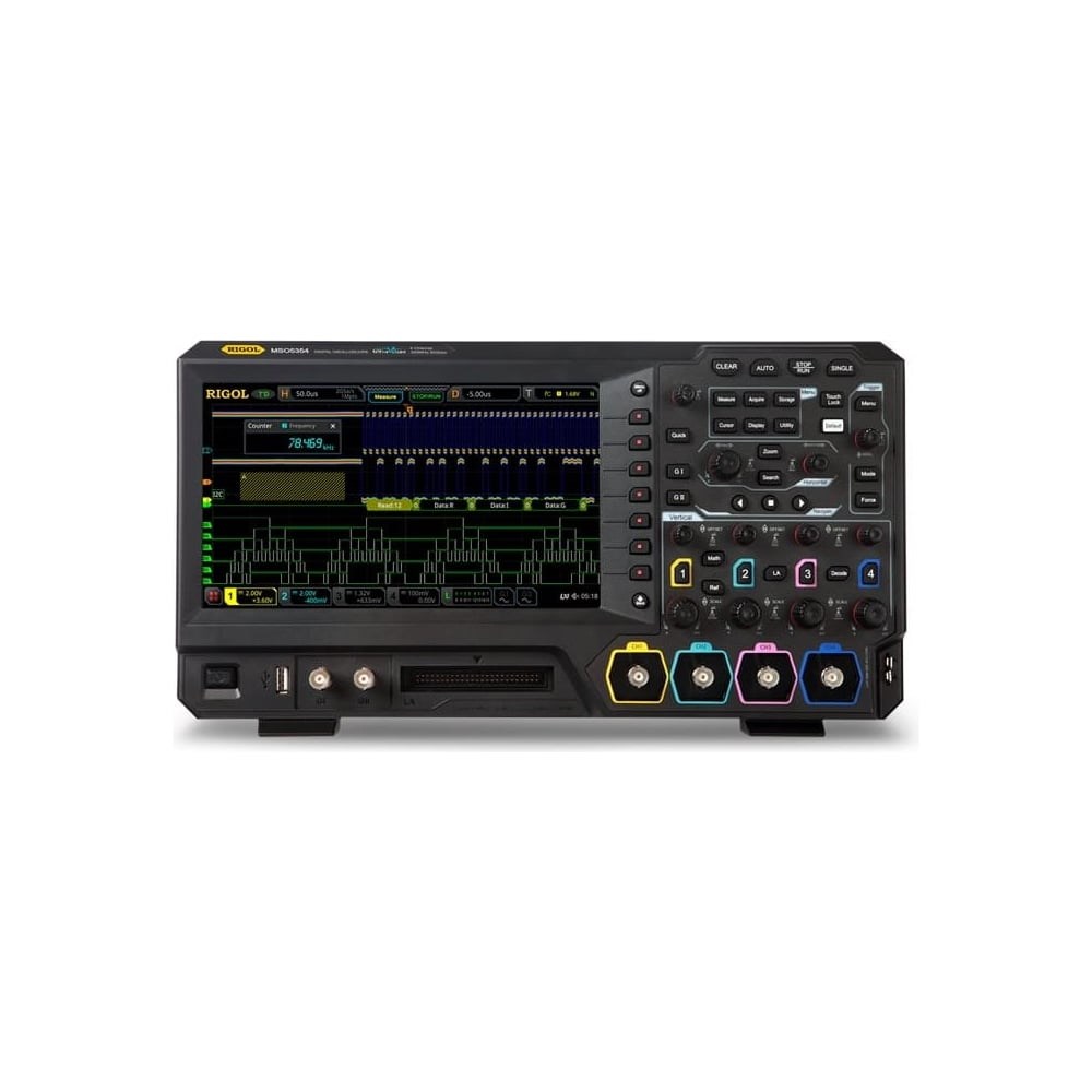 Цифровой осциллограф Rigol MSO5072 представляет собой доступное решение в линейке приборов, предназначенных для исследования и измерения параметров смешанных сигналов. Он оснащён двумя аналоговыми каналами с полосой пропускания 70 МГц и 16 цифровыми входами. Благодаря запатентованной технологии UltraVision II, реализованной на базе микросхем ASIC, этот осциллограф демонстрирует наилучшую производительность и функциональность среди аналогов с аналогичным частотным диапазоном.В цифровом осциллографе удачно сочетаются как традиционный кнопочный интерфейс с верньерами-регуляторами, так и 9-дюймовый сенсорный дисплей с разрешением WVGA. Дисплей оснащён функцией распознавания жестов, что значительно упрощает процесс настройки и работы с прибором.