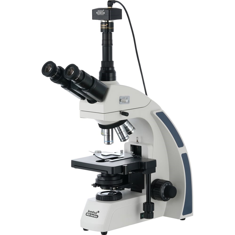Levenhuk MED D40T – микроскоп с цифровой камерой 16 Мпикс. А это значит, что его можно использовать не только для визуальных наблюдений, но и для создания цифровых архивов исследований. Оптика профессионального уровня позволяет изучать сложные и протяженные микроструктуры. Возможности микроскопа оценят специалисты, занимающиеся исследованиями в микробиологии, биохимии, медицине, ветеринарии и других областях науки. «Бесконечная» оптика высокого класса Микроскопы Levenhuk серии MED 40 снабжены оптической системой, скорректированной на бесконечность, которая применяется в микроскопах профессионального и высокого класса. Эта система включает объективы класса Infinity PlanAchromat и позволяет получать чистые, высококонтрастные изображения с высокой степенью плоскостности. Одна из самых важных особенностей бесконечной оптической системы заключается в том, что она позволяет устанавливать в оптический путь микроскопа между объективами и окулярным тубусом любые дополнительные компоненты. К ним можно отнести поляризаторы и эпи-флуоресцентные осветители. В итоге модульный принцип конструкции и простота в эксплуатации делают Levenhuk MED 40 оптимальными микроскопами для использования разных видов микроскопии и работы в гематологических, гистологических, микробиологических и других лабораториях. Поворотная тринокулярная насадка со световым делителем В микроскопе используется тринокулярная насадка со световым делителем. Она позволяет наиболее эффективно использовать световой поток, разделяя его между бинокулярным визуальным узлом и отдельной окулярной трубкой, предназначенной для установки камеры. Насадку можно вращать на 360°, что делает групповые наблюдения более удобными. А небольшой наклон визуального блока на 30° снижает нагрузку на мышцы шеи – длительные наблюдения вызывают меньше усталости. Визуальные наблюдения без искажений В микроскопе используется планахроматическая оптика: пять объективов дают разное увеличение и позволяют вести наблюдения «сухим» методом. Кроме 100-кратного объектива – его можно применять и для масляной иммерсии. Для защиты оптики три объектива с наибольшей кратностью снабжены пружинящими оправами. Окуляры широкопольные и имеют диоптрийную коррекцию. Они приближают в 10 раз. Вся оптика сделана из стекла с антигрибковым покрытием. Цифровые возможности В комплект поставки включена 16-мегапиксельная камера, которую можно подсоединять к компьютеру. Она позволяет делать фотографии, записывать видеоролики, вести трансляции. Картинка с камеры выводится на подключенный экран в режиме реального времени. Благодаря этому во время исследований нет необходимости постоянно смотреть в окуляры, напрягая зрение и мышцы шеи, поэтому длительная работа в лаборатории становится легче и удобнее. С помощью специальной программы можно корректировать размер, яркость и контрастность изображения, менять время выдержки, проводить калибровку камеры с объективами, измерять образцы или отдельные структуры (доступно несколько единиц измерения). Удобная работа с микропрепаратами Предметный столик можно перемещать по двум направлениям. Он снабжен препаратоводителем, который помогает точно размещать образцы под объективом. Рядом со столиком находятся ручки грубой и точной фокусировки. Под ним – яркая светодиодная подсветка и