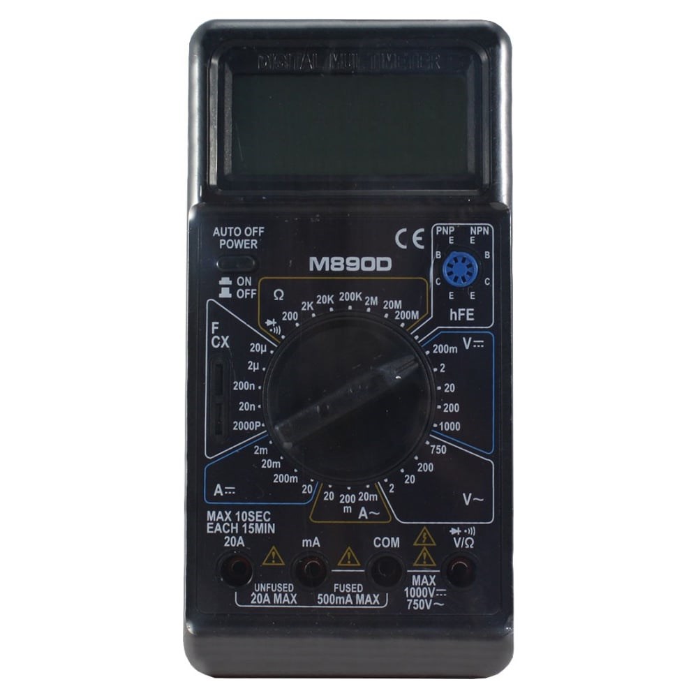 Цифровой мультиметр WHDZ M890D является одним из серии портативных профессиональных измерительных инструментов. Служит для измерения напряжения, силы тока, сопротивления, емкости, проверки диодов и транзисторов. Прибор имеет защиту от перегрузки и перенапряжений, что обеспечивает безопасность в эксплуатации. Полученные результаты отображаются на цифровом дисплее с крупными цифрами.