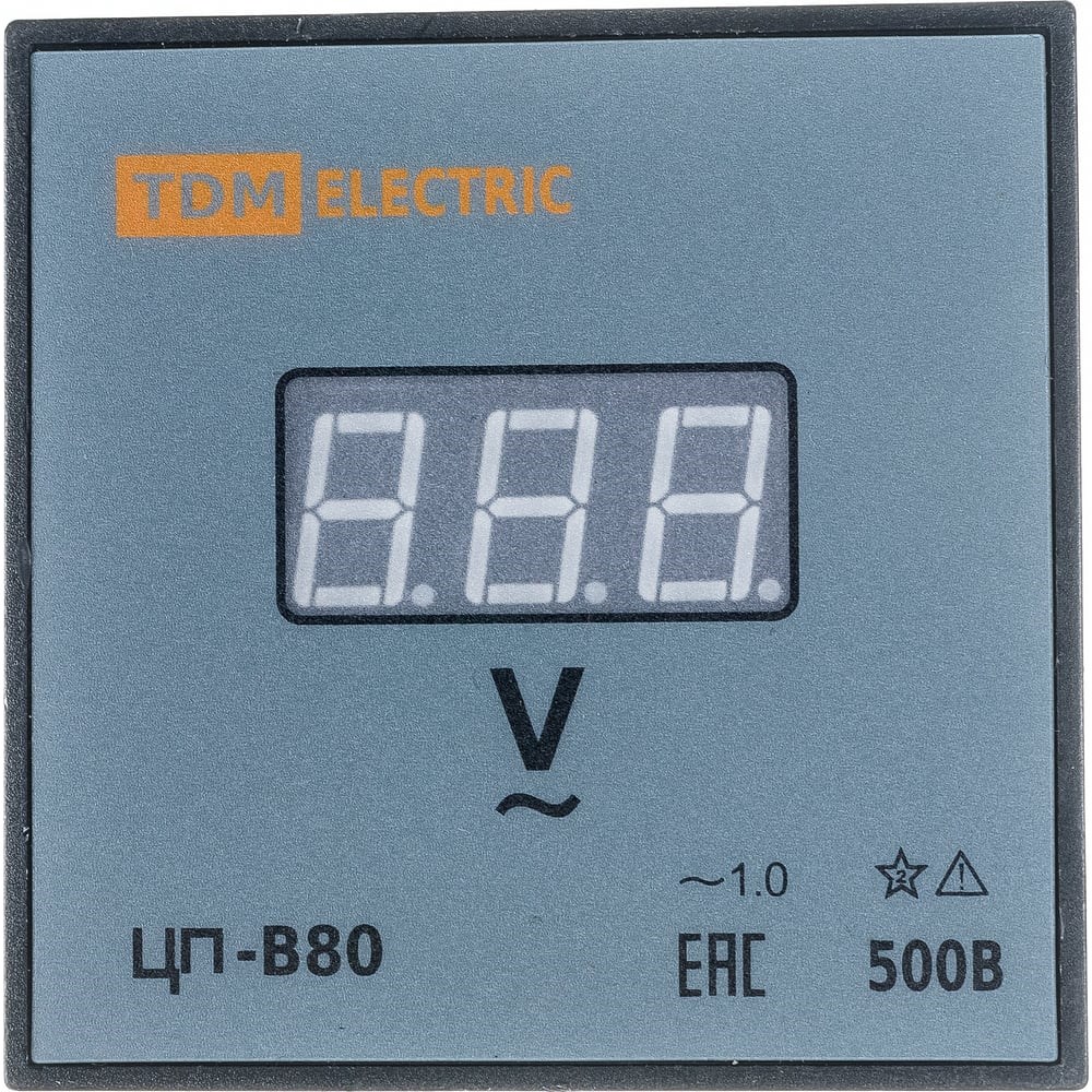 Цифровой вольтметр TDM ЦП-В80 500В-1,0 без поверки SQ1102-0520 измеряет напряжение в однофазных электрических цепях переменного тока. Применяется в низковольтных комплектных устройствах распределительных электрических сетей жилых, общественных и производственных объектов. Корпус изготовлен из негорючего самозатухающего пластика. Дискретность: 50 вольт