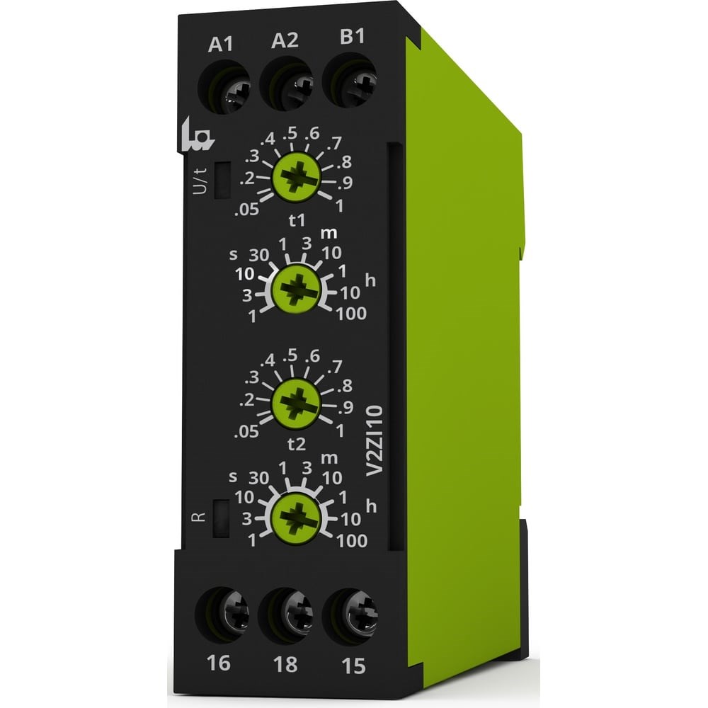 Циклическое реле времени TELE V2ZI10 12-240V AC/DC 125200 предназначено для управления нагрузкой с заданной периодичностью включения/отключения. На передней панели реле времени расположены регуляторы, с помощью которых можно настроить период времени включенного состояния нагрузки (время импульса) и выключенного состояния нагрузки (время паузы). Благодаря раздельной настройке времени импульса и времени паузы можно настроить их независимо и любой продолжительности (от 50 миллисекунд до 100 часов). Например, можно реализовать включение поливочного насоса на 10 минут, затем выждать паузу 8 часов и повторять этот алгоритм до тех пор, пока подано напряжение питания на реле времени. Таким же образом можно включать/выключать электрические приборы обогрева или световые приборы. Важно! Следует учесть, что реле времени не знает "астрономического времени", часовых поясов, дней недели и т.п., а лишь отсчитывает заданные интервалы времени, поэтому, в случае отключения напряжения питания по каким-либо причинам, при возобновлении питания алгоритм включения/выключения начнется заново, независимо от того, в какой момент произошло отключение питания. Реле времени циклическое V2ZI10 12-240V AC/DC 125200 позволяет выбрать один режим работы из двух Ii или Ip. Режим работы (функция времени) выбирается при подключении питания к реле времени.