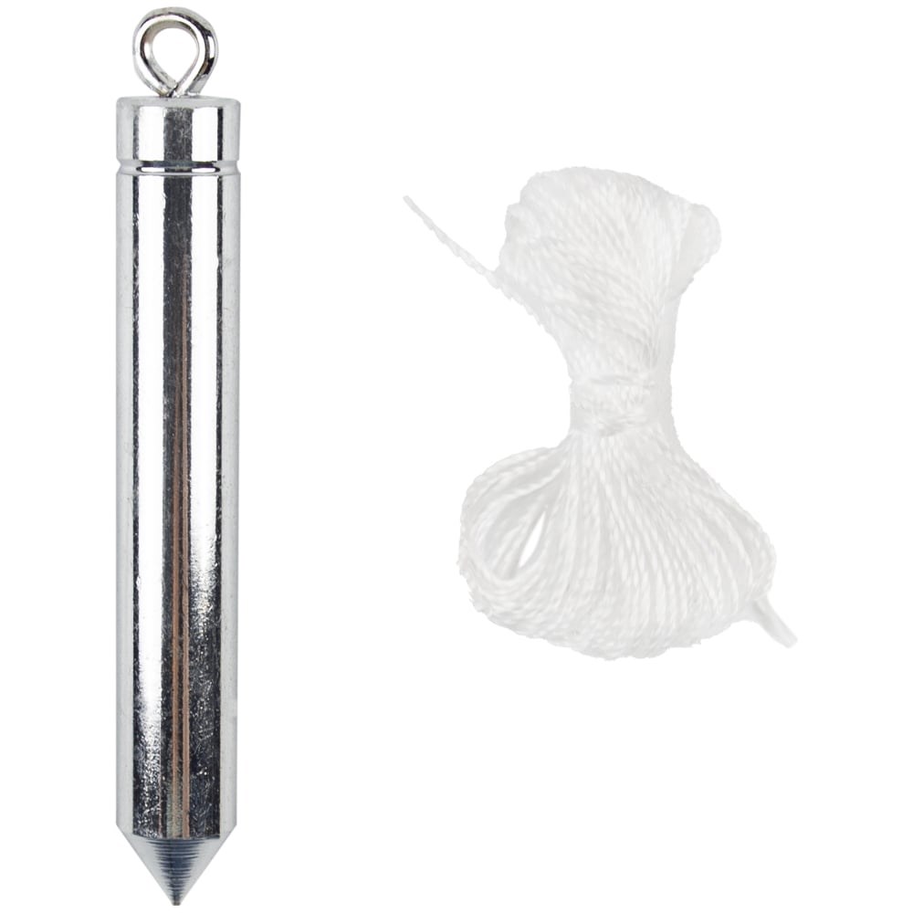 Предназначен для разметки и проверки вертикальных линий, углов и поверхностей при малярных и строительных работах. Форма: цилиндр;x000D Длина шнура: 5 м;x000D Материал: сталь;x000D Вес: 150 г.