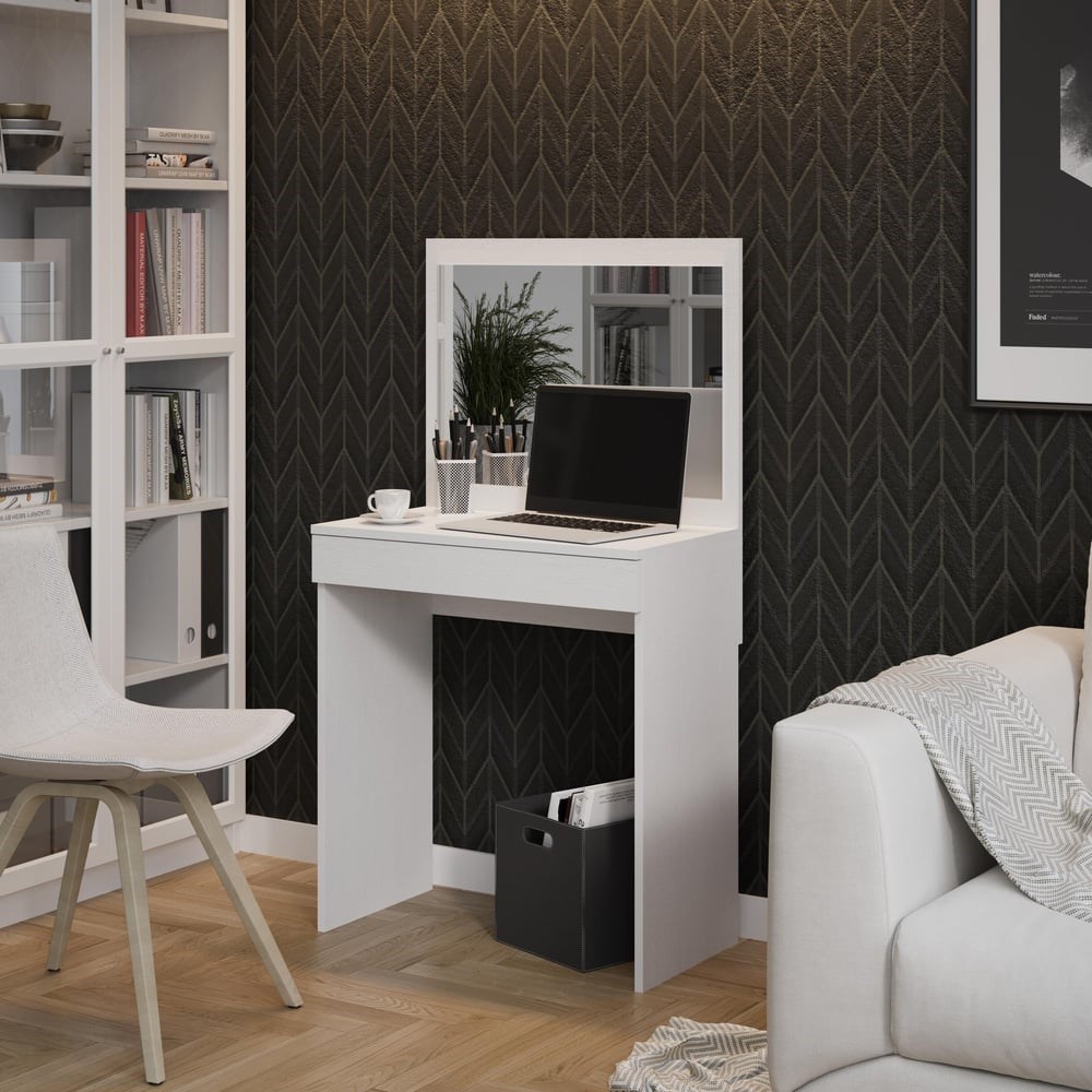 Туалетный стол ТриЯ Никки Тип 1 белый ясень 242593 предназначен для размещения в спальне. Поверхность изделия легко чистится и не требует сложного ухода. Благодаря высокой прочности прослужит долгое время. Современный дизайн стола впишется в любой интерьер.