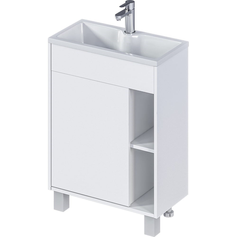 Тумба с раковиной в ванную 1Marka Lido 60 см Напольная/Подвесная цвет Белый глянец У83298 представляет собой стильное и функциональное решение для вашей ванной комнаты. Выполненная в современном минималистичном дизайне, она станет отличным дополнением к интерьеру, сочетая в себе практичность и эстетику. Тумба имеет компактные размеры: глубина всего 30 см, что позволяет сэкономить пространство в ванной комнате. Особенностью тумбы является ее конструкция без ручек, которая создает цельный и легкий образ, не утяжеленный фурнитурой. Это позволяет гармонично вписаться в любой интерьер. Тумба оснащена демпферами и дверными петлями с доводчиками, что обеспечивает бесшумное и мягкое закрывание. Это делает использование тумбы более комфортным и бережливым. В комплекте с тумбой идет раковина из полимерной керамики и специализированный регулируемый телескопический сифон. Это обеспечивает удобство и простоту установки. Материал корпуса тумбы - влагостойкий ЛДСП, а фасад выполнен из МДФ. Это гарантирует долговечность и надежность изделия. Тумба Lido 60Н 1д - это сочетание стиля, функциональности и практичности, которое станет отличным выбором для вашей ванной комнаты.
