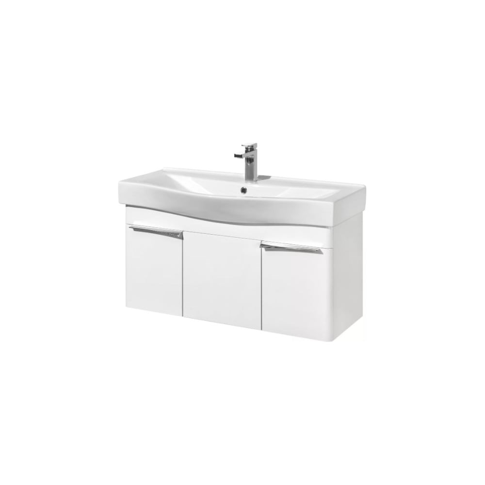 Тумба под раковину AQUATON «Беверли 100» — белый глянец (1A236701BV010)Позвольте представить вам просторную и элегантную тумбу «Беверли 100», созданную для тех, кто ценит сочетание лаконичного современного дизайна и продуманной функциональности.Что важно знатьШирокая модель 100 см — больше места на столешнице и внутри тумбы.Материалы: влагостойкая ламинированная плита и высококачественная MDF — устойчивость к влаге и долговечность.Организация хранения: две боковые ниши с регулируемыми полками и центральный ящик для мелочей.Механика: петли с доводчиками для плавного закрывания створок; центральный ящик с системой push-to-open.Дизайн: ручки в глянцевом хроме гармонируют с белой керамической раковиной «Беверли» (Santek).Покрытие: белый глянец высокой степени — визуальная чистота, простота ухода и износостойкость.Внутренняя организация и удобствоЛевая и правая секции: распашные фасады-створки, за ними — вместительные ниши с регулируемыми полками из влагостойкой ламинированной плиты. Полки можно подстроить под ваши нужды — больше места для больших средств или несколько уровней для мелочей.Центральный ящик: удобен для ежедневных принадлежностей; система push-to-open делает открывание простым и элегантнымПетли с доводчиками обеспечивают мягкое и бесшумное закрывание дверок, продлевая срок службы и повышая комфорт использования.