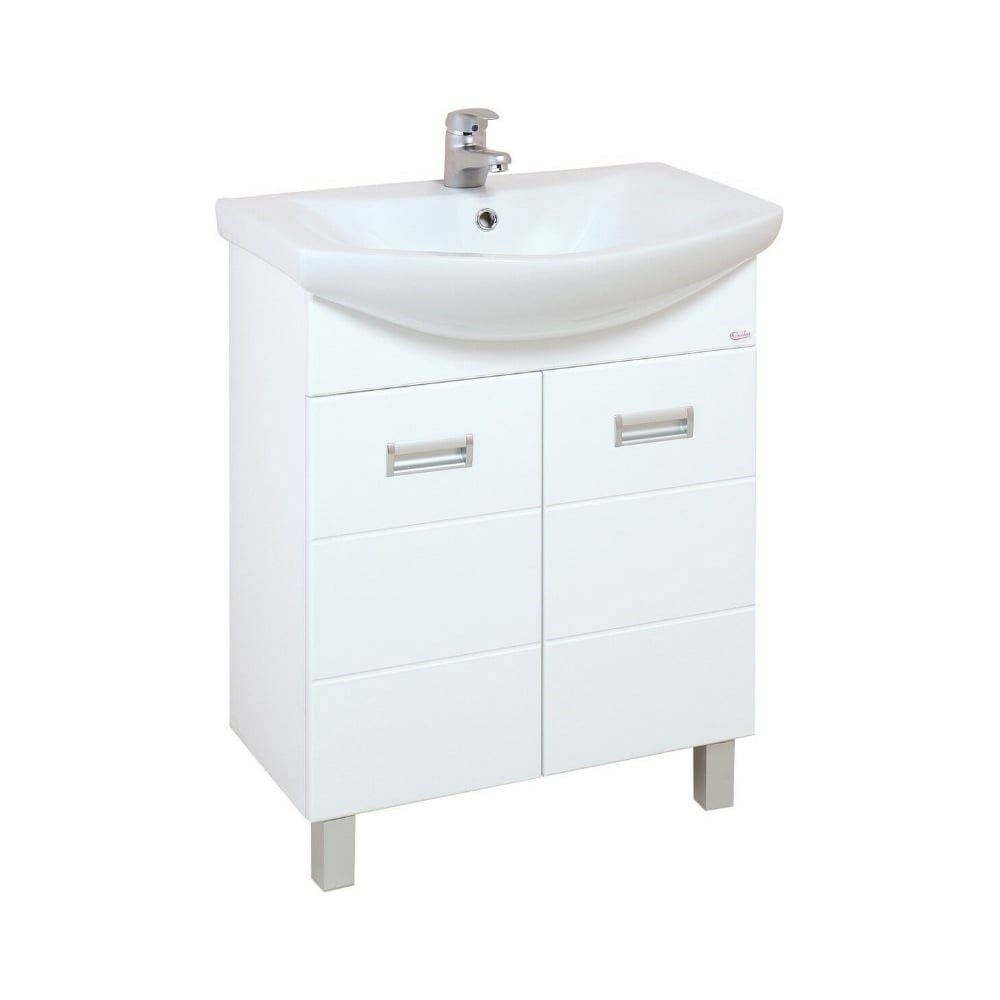Напольная тумба для ванной комнаты Onika Балтика 60 - это простые функциональные формы и яркий акцент в любом дизайне. Глянцевый белый цвет фасада, ненавязчивая горизонтальная фрезеровка, врезные хромированные ручки и аккуратная лаконичность - все это позволяет коллекции Балтика стать центральным звеном интерьера ванной комнаты. За распашными дверцами с системой плавного закрывания расположено вместительное отделение, разделенное на две части горизонтальной полочкой, которое станет удобным местом для хранения различных бытовых принадлежностей. Корпус тумбы выполнен из ЛДСП, фасад - из ЛМДФ в пленке, устойчивых к механическим воздействиям, перепадам температур и высокой влажности. 2 декоративных и 2 пластиковых ножки с регулировкой по высоте идут в комплекте с тумбой. Размеры тумбы без учета раковины и ножек: 56x31x68 см.Размеры тумбы с учетом раковины и ножек: 61х45х83 см. Гарантия на изделие 2 года. Совместимая раковина - Santek Балтика 60.