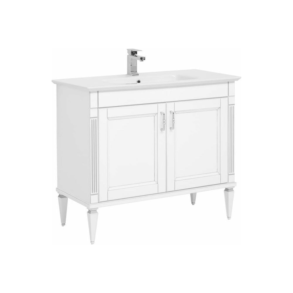 Тумба под раковину Aquanet Селена 00201650 стильного дизайна. Корпус тумбы выполнен из ламинированного влагостойкого ДСП, а фасады - из МДФ, покрытого белой краской в несколько слоев. Внимание! Раковина в комплект поставки не входит.