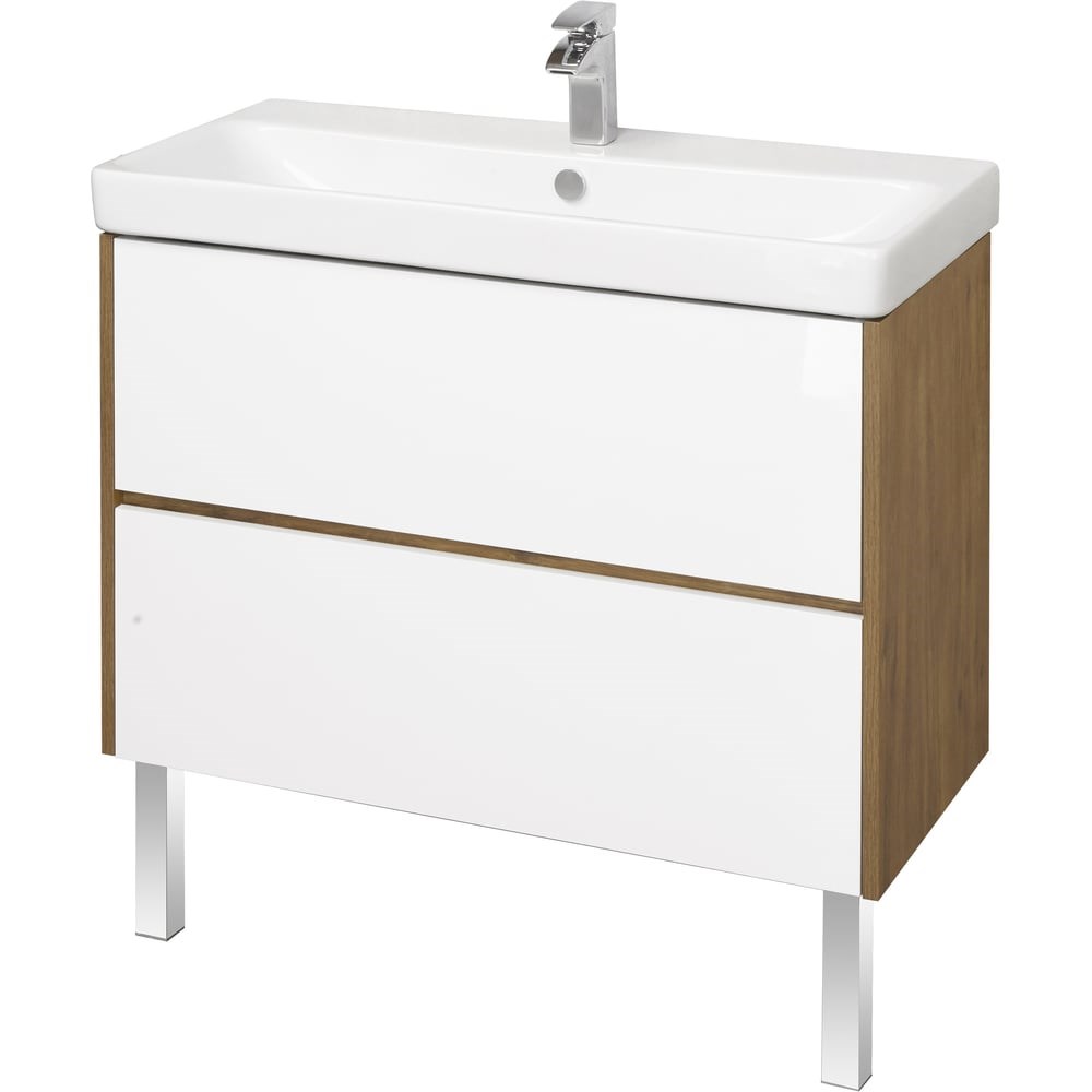 Тумба под раковину Акватон Сканди 90 белая, дуб рустикальный 1A251901SDZ90 выполнена в популярном минималистичном скандинавском стиле. Корпус тумбы выполнен из влагостойкой ЛДСП в декоре натурального дерева, а фасады в белой глянцевой покраске. Конструктивно тумба состоит из 2 вместительных ящиков, установленных на направляющие с интегрированной системой push-to-open для комфортного использования. На тумбе нет выступающих деталей и фурнитуры, открытие ящиков реализовано нажатием на фасад. Тумба комплектуется белоснежной раковиной Адриана от бренда Santek.(приобретается отдельно). Тумбу по желанию можно использовать в двух вариантах: как подвесную или дополнительно приобрести опоры.