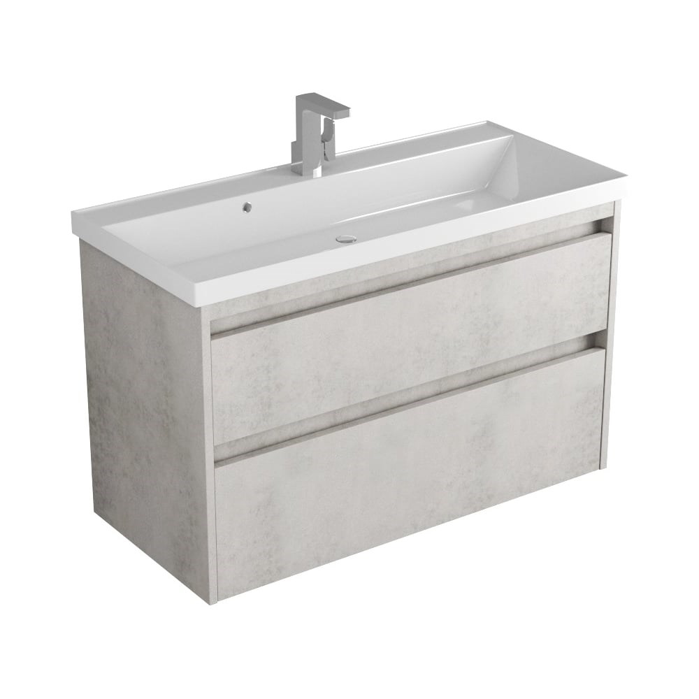 Тумба Veneciana MUSKAT 100 светлый камень под умывальник Classic 100 510007 подвесного монтажа с 2-мя ящиками. Корпус изделия - ВЛДСП 16 мм, покрытие пленка ПВХ структура камень, светлый бетон (светло-серый). Фасад изделия - МДФ 16 мм, покрытие пленка ПВХ структура камень, светлый бетон (светло-серый). У ящиков предусмотрены направляющие плавного закрывания скрытого монтажа Hettich, что придает комфорт при эксплуатации. Цвет ящика - зебрано. В конструкции верхнего ящика - система разделения (органайзер). Подвесы Hettich - 2 шт.