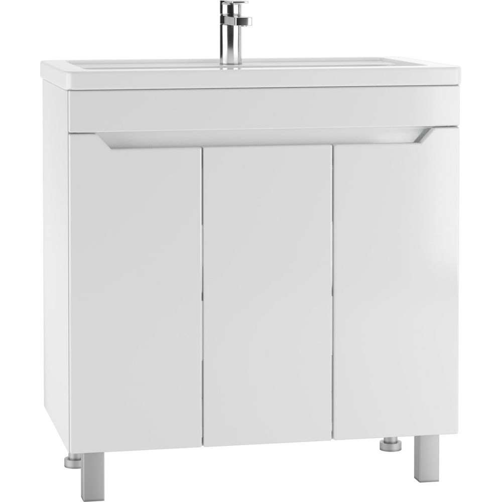 Тумба АЙСБЕРГ Мечта под умывальник "Maria 80" без ящика DM2325T станет оптимальным решением для ванных маленьких и стандартных площадей.Корпус выполнен из ЛДСП, фасад выполнен из МДФ, покрыт пленкой ПВХ цвета белый глянец.Тумба поставляется в собранном виде.Для удобства в использовании на дверях установлены петли с доводчиком. Возможна регулировка ножек от 100 мм.Дополнительно необходимо приобрести умывальник мебельный.