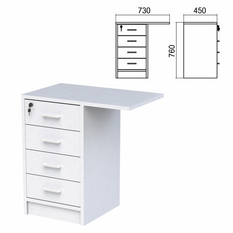 Тумба приставная "Арго", 730х450х760 мм, 4 ящика, замок, серый (КОМПЛЕКТ)