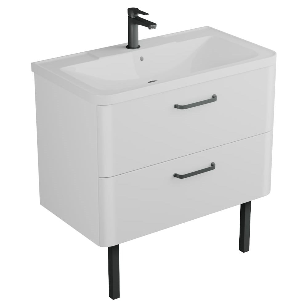 Тумба Tibr 80см (58025); корпус ЛДСП 16мм; фасад МДФ 19мм, покрытие краска, цвет белый матовый; верхний ящик с системой разделения; 2 выдвижных ящика со встроенным доводчиком плавного закрывания, скрытого монтажа; внутренняя отделка цвет дуб зебрано; дополнительно можно приобрести ножки. Отдельно необходимо приобрести раковину Atlantica 80 (Andrea)