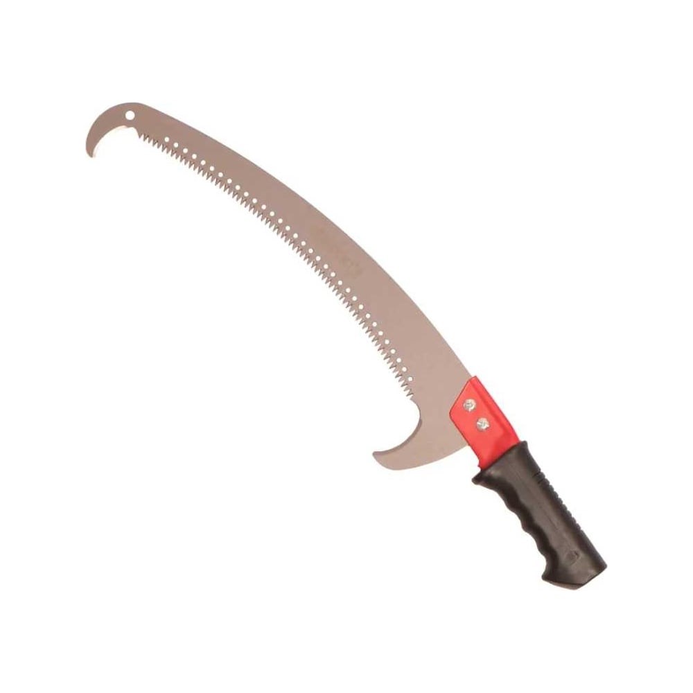 Пила с фиксированным лезвием необходимый инструмент для туриста. Будет удобна также для садоводов и в домашнем хозяйстве. Подходит для распила сучьев, веток и небольших бревен. Форма пилы - изогнутая серповидная, закругленные фиксаторы-зацепы по обеим сторонам лезвия облегчает работу в условиях сумерек, верхним фиксатором удобно подцеплять надпиленные ветки, расположенные сверху. Трёхгранная заточка и дополнительная закалка зубьев позволяют быстро распиливать древесину, а высококачественная сталь исключает затупление лезвия. Пила оснащена рукояткой удобной формы из мягкого ПВХ-пластика, позволяющей держать пилу под оптимальным углом без дополнительного напряжения кисти.