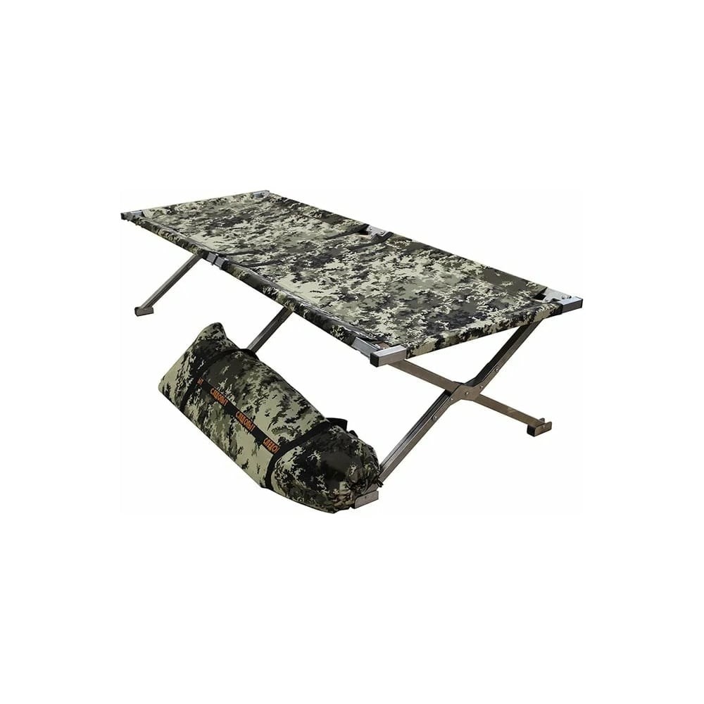 Туристическая раскладушка в чехле Следопыт 1750x650x400 мм, оцинкованная труба, 25x25 мм PF-CB-01 отлично подойдет для использования на даче, в походе, на рыбалке. Ткань GERDA CAMO - смесовая камуфляжная ткань для охранных структур, охоты, рыбалки и активного отдыха. В состав входят высококачественные волокна хлопка и полиэстера. Предусмотрена водоотталкивающая пропитка для защиты от дождя и ветра. Конструкция раскладушки очень прочная, выдерживает нагрузку до 400 кг.