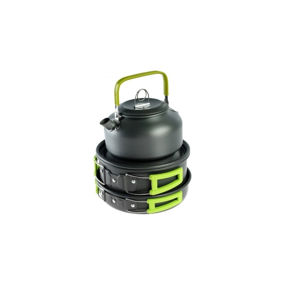 Туристический набор посуды Maclay 4280853 включает в себя: Чайник: Диаметр низа - 14 см; Диаметр верха -9 см; Высота - 8 см. Кастрюля: Диаметр - 16.5 см; Высота - 9 см; Длина ручки - 10 см. Сковорода: Диаметр - 17 см; Высота - 4.5 см; Длина ручки - 10 см.