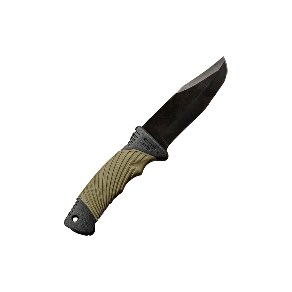 Туристический нож Мастер К зеленая рукоять, клинок 11 см 4679954 подходит для использования в туристических поездках, походах, на рыбалке и охоте. Рабочая часть изготовлена из прочной хромированной стали, что обеспечивает долгий срок службы. Рукоятка из пластика имеет эргономичную форму для комфортного удержания при работе. Чехол гарантирует безопасное хранение и транспортировку ножа.