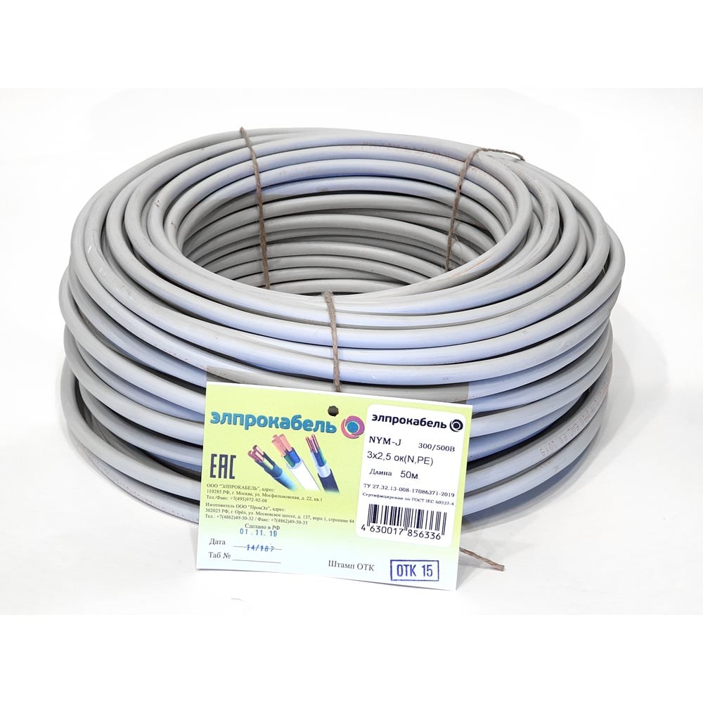 Твердый круглый кабель NYM-J ЭлПроКабель 4630017856336