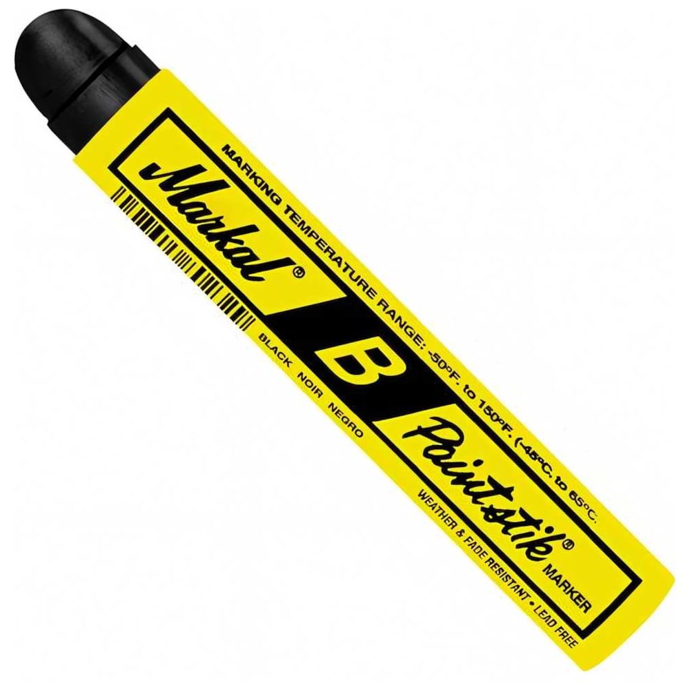 Твёрдый маркер-краска Markal B Paintstik, чёрный 80223 сделан из бруска твёрдой краски. Этот универсальный маркер позволяет маркировать практически любые поверхности и оставляет яркую, практически не смываемую маркировку. Маркер краска Markal B Paintstik это более экономный вариант маркеров с жидкой краской и идеально подходит для маркировки грубых, замасленных, ржавых, шероховатых и мокрых поверхностей. Маркер не нужно затачивать или прокачивать, весь маркер состоит из цельного бруска краски. Благодаря своей универсальности и доступной цене маркер Markal B Paintstik широко применяется в самых различных отраслях промышленности. Эти маркеры водостойкие и маркировка не выгорает под солнцем. Широкий температурный диапазон составляет от -46°C до 66°C. Маркировка является перманентой, не выгорает на солнце и выдерживает любые погодные условия. Инструмент облегчает работу при разметке строительных материалов, а также на производстве.