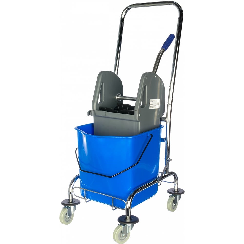 Уборочная тележка с корзиной Baiyun 23л IT-0107 имеет металлический хромированный каркас, что делает её прочной и долговечной. Ведро выполнено из пластика. Поворотные колеса облегчают перемещение приспособления по рабочей территории. Габариты тележки: 560х400х940 мм.