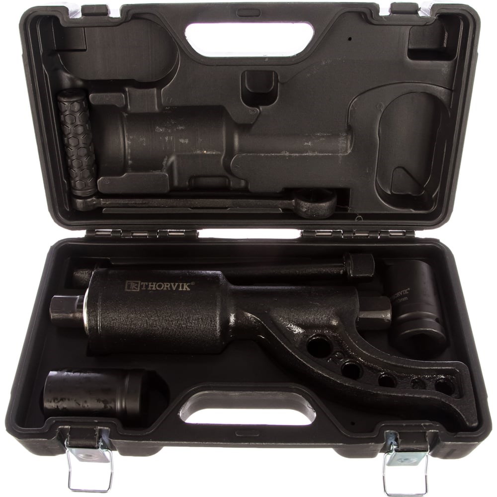Ручной механический удлиненный гайковерт 3800 Нм и головки торцевые 32 мм, 33 мм Thorvik LSW3 52754 удобен в использовании за счет высокого передаточного отношения. Это позволяет с меньшими усилиями отвернуть гайки. Длинная рукоять создает достаточный рычаг для максимально комфортной работы.