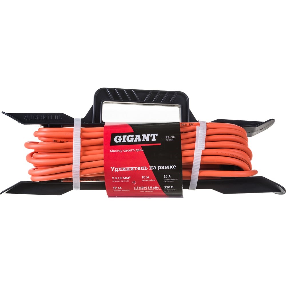 Удлинитель на рамке Gigant с/з ПВС 3х1,5 16A 10м IP 44 INDUSTRY EG PE-009 (Россия) служит для удаленного подключения электроинструмента. Защита IP44 позволяет использовать удлинитель внутри влажных помещений. Длина кабеля - 10 метров, сечение провода - 3х1,5 мм. Рамка упрощает смотку и хранение удлинителя. Ручка на рамке позволяет с удобством переносить удлинитель по рабочей площадке. Провод удлинителя изготовлен по стандарту ГОСТ. Розетка оснащена крышкой, чтобы строительный мусор не попадал в отверстие. Gigant – собственная торговая марка компании ВсеИнструменты.ру, разработанная специально для требовательных мастеров. Продукция представлена профессиональными и бытовыми инструментами, имеет доступную цену и высокое качество. При изготовлении товаров Gigant используется современное оборудование и прочные материалы. Производство осуществляется на современных предприятиях России и Азии. Тестирование товаров осуществляется в два этапа, каждая партия инструментов проходит проверку на соответствие стандартам и заявленным техническим характеристикам. Это является залогом качества и надежности готового продукта. Продукция представлена широкой линейкой инструментов. У нас можно приобрести ручной инструмент, строительный, садовый, сантехнический, климатический, крепежный, автогаражный, а также станки, расходные материалы и многое другое.