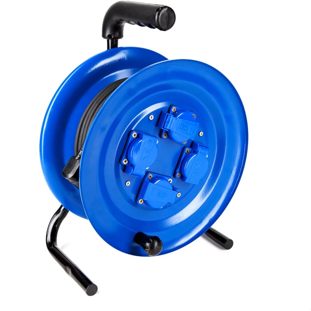 Силовой удлинитель на металлической катушке с заземлением 20 метров\КГ 3x1,5\220В -представляет собой металлическую катушку диаметром 300мм с намотанным проводом, оснащенным четырьмя розетками.Катушка - это удобное приспособление для защиты длинного провода от спутывания, его хранения и транспортировки. Класс защиты IР-44 означает, что провод защищен от попадания случайных брызг и капель воды и от проникновения твердых предметов. Используется на строительных площадках, в производственных цехах и бытовых условиях, позволяет присоединить несколько электрических приборов одновременно.Удлинитель на катушке необходим там, где осуществляется работа с электрическим оборудованием, находящимся на большом расстоянии от сети электропитания. На корпусе катушки располагается устойчивая подставка и специальная рукоятка для удобства переноски удлинителя. Провод КГ имеет большую устойчивость к механическим повреждениям и может быть использован при низких температурах до -40 град.ВНИМАНИЕ: ПЕРЕД ИСПОЛЬЗОВАНИЕМ РАЗМОТАТЬ НА ВСЮ ДЛИНУ!