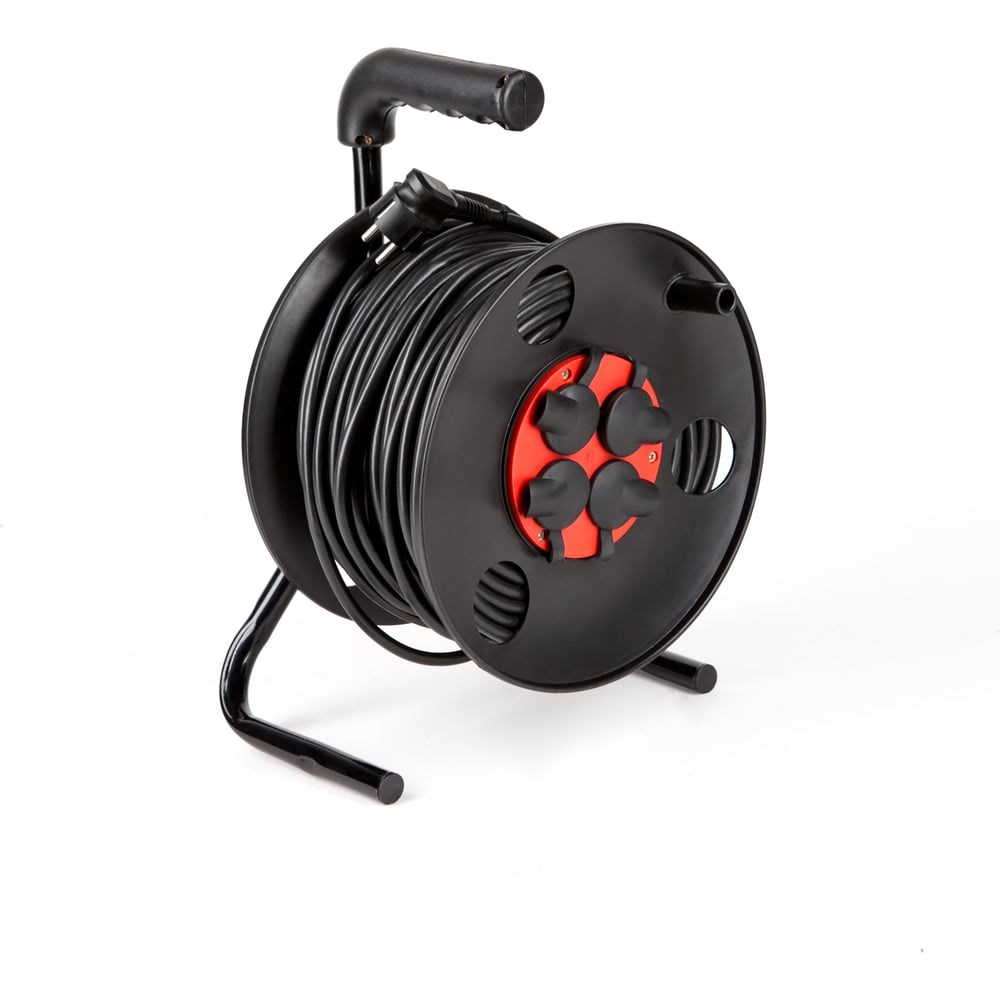 Силовой удлинитель на катушке с заземлением 50 метров + IP-44\ ПВС 3*1,5 \220В -представляет собой катушку из пластика диаметром 240мм с намотанным проводом, оснащенным четырьмя розетками.Катушка - это удобное приспособление для защиты длинного провода от спутывания, его хранения и транспортировки. Класс защиты IР44 означает, что провод защищен от попадания случайных брызг и капель воды и от проникновения твердых предметов. Используется на строительных площадках, в производственных цехах и бытовых условиях, позволяет присоединить несколько электрических приборов одновременно.Удлинитель на катушке необходим там, где осуществляется работа с электрическим оборудованием, находящимся на большом расстоянии от сети электропитания. На корпусе катушки располагается устойчивая подставка и специальная рукоятка для удобства переноски удлинителя.ВНИМАНИЕ: ПЕРЕД ИСПОЛЬЗОВАНИЕМ РАЗМОТАТЬ НА ВСЮ ДЛИНУ!