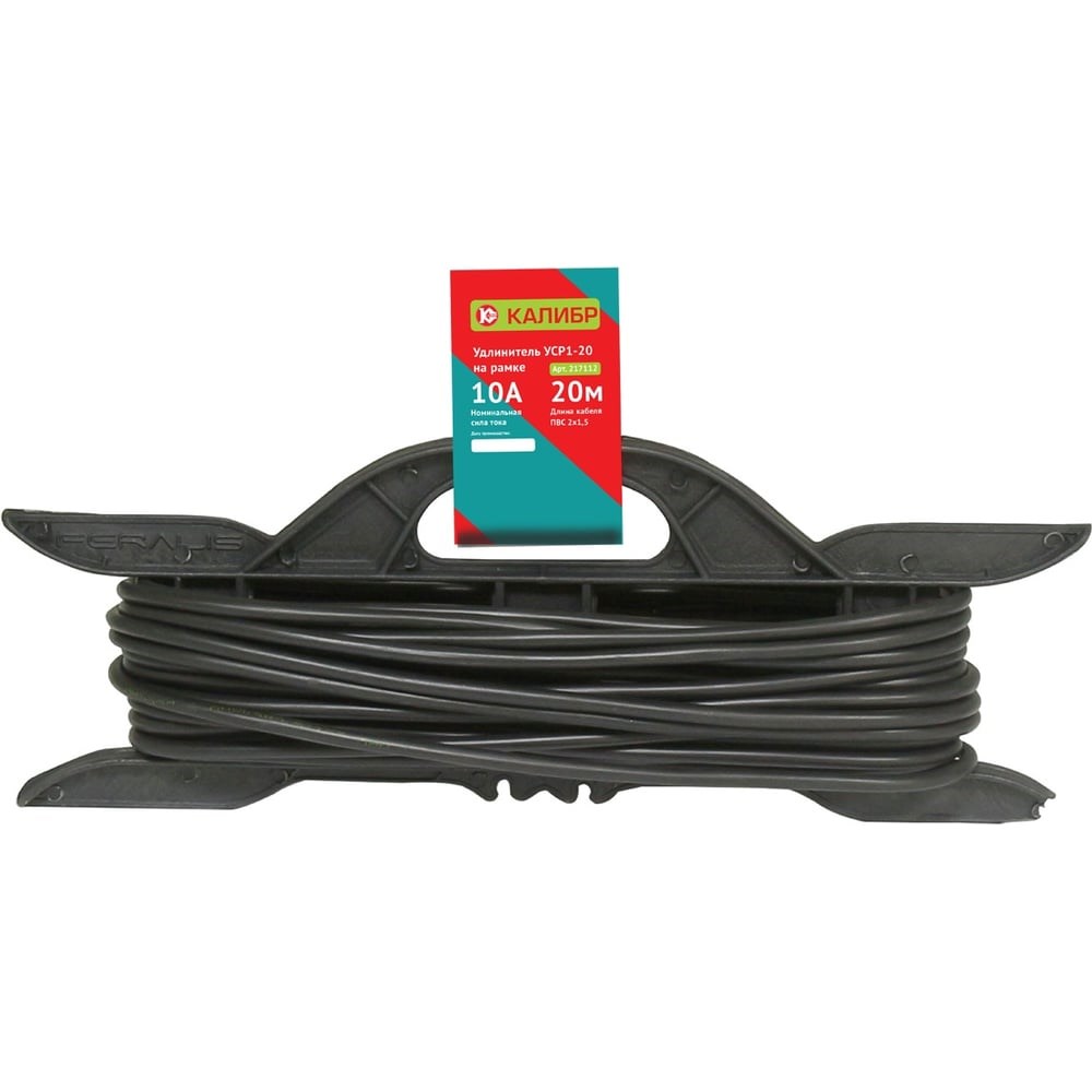 Силовой удлинитель на рамке Калибр 20м (2х1,5) 217112 с одной розеткой предназначен для строительных объектов с удаленным источником энергии. Двойная изоляция ПВХ силового удлинителя обеспечивает ему дополнительную защиту от внешних факторов. Оптимальная нагрузка - 3.5 кВт, 15А. Класс защиты IP-20 - не рекомендуется использовать во влажных и химически активных средах. Внимание! Удлинители выдерживают номинальную нагрузку только при полностью размотанном кабеле.