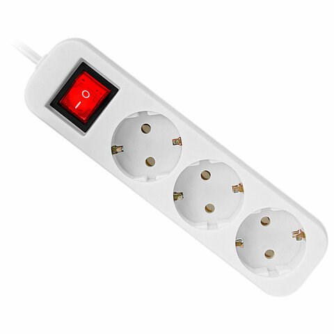 Сетевой удлинитель в пластиковом корпусе оснащен 3 розетками с заземлением. Корпус выполнен из негорючего пластика. На корпусе расположен выключатель. Толщина жил кабеля – 3х1 мм, длина кабеля – 1,8 м. Номинальная частота – 50 Гц, номинальное напряжение – 230 Вт, максимальный ток нагрузки – 10 А, суммарная мощность нагрузки – 2200 Вт.