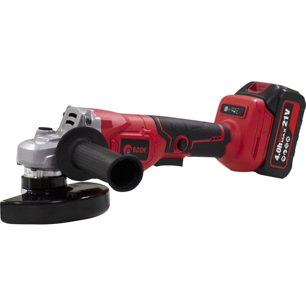 Угловая шлифовальная машина Edon UAG-21A - это надежный и удобный инструмент для выполнения шлифования, резки и полировки различных материалов с возможностью выполнения работы в трех различных скоростных режимах. УШМ оснащена бесщеточным двигателем, который обеспечивает высокую мощность, длительный срок службы и высокую износостойкость. Инструмент укомплектован аккумулятором 21 В с емкостью 4 А.ч., такой энергоемкости достаточно для сильной длительной нагрузки.
