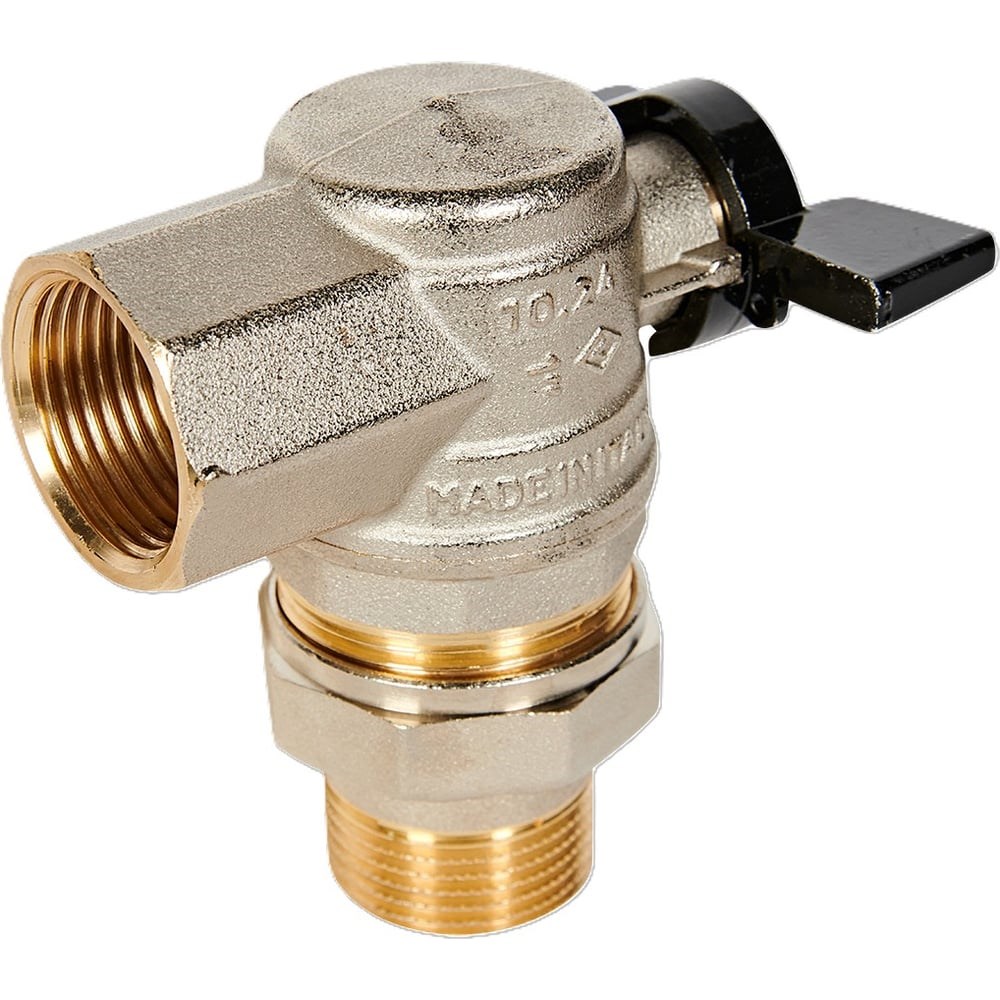 Угловой кран Американка Н/В Ду-25 /1" Бабочка черная Bugatti OREGON 5940009 - шаровая полнопроходная арматура с изогнутым корпусом (под 90 градусов). Для открытия/закрытия крана предусмотрена рукоятка в виде "бабочки". Внутренняя резьба с одной стороны выполнена по ISO 7:2000, а накидная гайка с другой - по ISO 228/1.