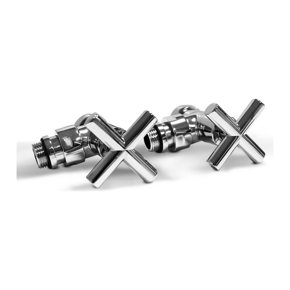 Вентили запорные угловые (запорно-регулировочная арматура) применяются для регулирования количества подачи горячей воды в водяной полотенцесушитель типа лесенка при обязательном наличии байпаса.Регулировка подачи воды в полотенцесушитель приводит к увеличению или уменьшению температуры нагрева полотенцесушителя либо к полному перекрытию поступления теплоносителя (воды) в полотенцесушитель.Наличие кранов значительно повышает функциональность полотенцесушителя типа лесенка — регулируется температура полотенцесушителя, перекрывается подача воды, проходящей через полотенцесушитель, без необходимости отключения стояка, что особенно актуально при демонтаже полотенцесушителя.Краны устанавливаются на места соединительных угловых блоков полотенцесушителя, при горизонтальном подключении – в одной плоскости, при диагональном подключении – снизу и сверху.Подключение к полотенцесушителю осуществляется при помощи наружной резьбы 1/2'', к системе отопления при помощи накидной гайки с внутренней резьбой 3/4''.Краны не только влияют на функциональность полотенцесушителя, но и придают прибору более завершенный эстетичный внешний вид.